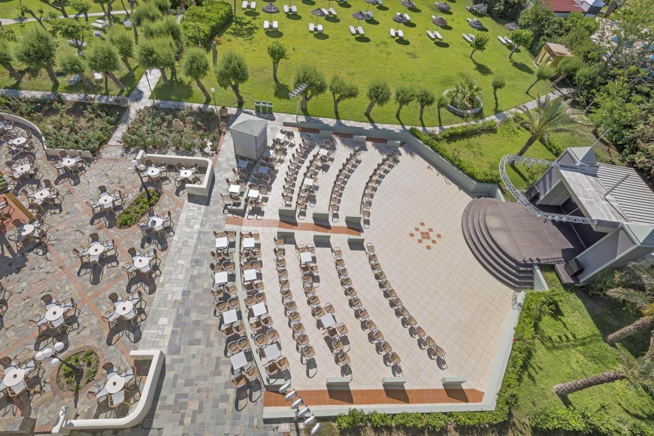 | A kellemes szálloda két épületből áll, és egy nagy szubtrópusi kertben helyezkedik el. A létesítmény területe egy széles, homokos, lankás parttal rendelkező strandig nyúlik le. A közelben számos bár, üzlet, étterem, kávézó és esti sétára hívogató hely található. Faliraki központja kb. 650 m. Minden korosztály számára ajánljuk. |