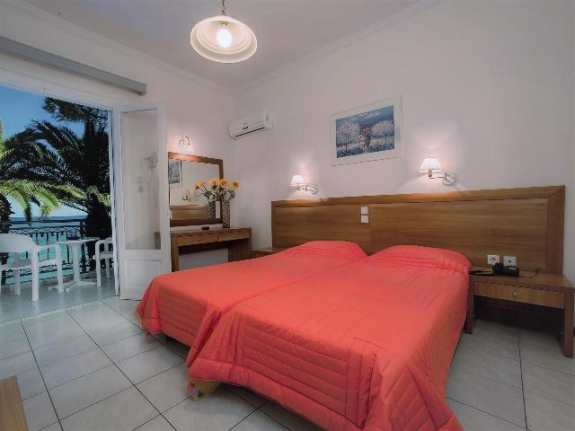 2 ágyas tengerre néző vagy 2-3 ágyas kertre/hegyre néző fürdőszobás, erkélyes szobákban, hűtő ingyenesen kérhető. Légkondicionálás és széf felár ellenében |