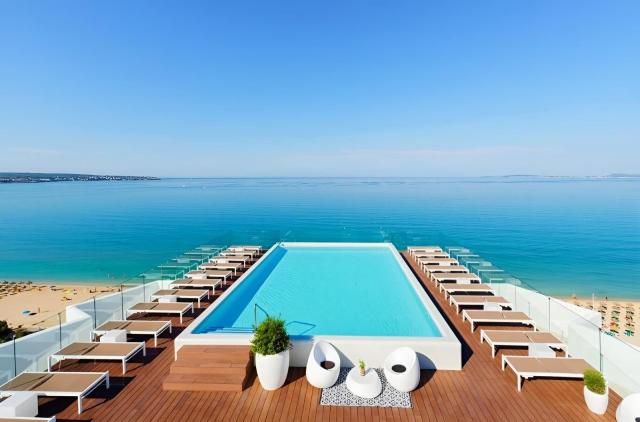 | A nyüzsgő Playa de Palma 6 km hosszú parti sétányán elhelyezkedő, mediterrán hangulatú szálloda közvetelenül a homokos strand mellett található. A tetőn található medencéből és bárból csodálatos kilátás nyílik a tengerre. Közvetlen közelében számos üzlet, étterem, bár, különféle szórakozási és esti szórakozási lehetőség. Palma, a főváros kb. 10 km-re található. Buszmegálló kb. 70 m, így tökéletes kiindulópont a sziget felfedezéséhez. Minden korosztály számára ajánljuk. |