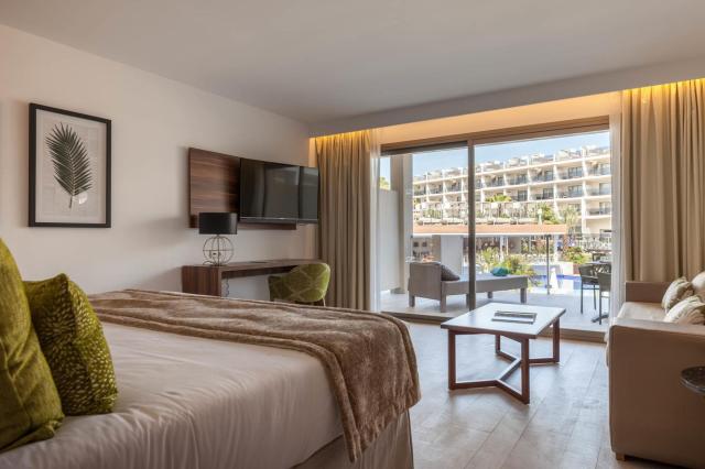 | Az 5 épületből álló, szépen kialakított 5 csillagos szálloda a kényelem és a luxus legjavát ötvözi a modern, mediterrán hangulattal. Palmanován található, nem messze a gyönyörű homokos tengerparttól. A közelben számos bevásárlási sé szórakozási lehetőség áll rendelkezésre. A kellemes hangulatú létesítmény nagy területen helyezkedik el. Külön felnőttek és gyermekek részére kialakított medencék, animációs csapat, wellness-központ, a'la carte-éttermek és bárok várják a vendégeket. |